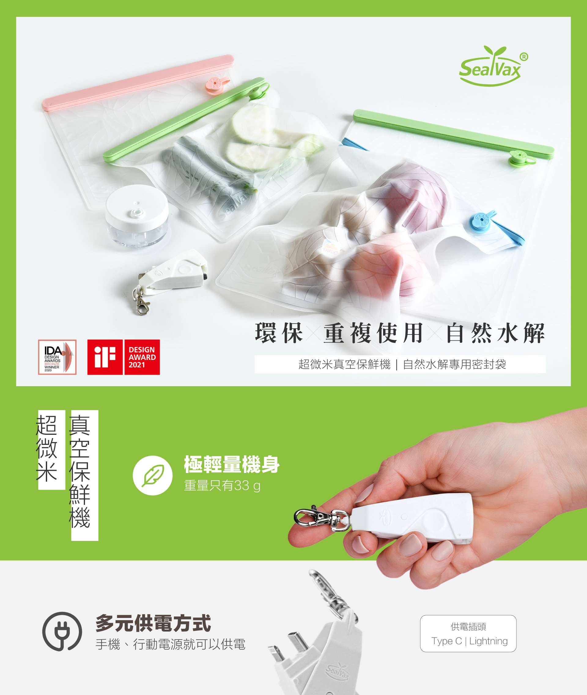 【SealVax】真空好攜袋 嘗鮮3件組(小袋1 真空機 隔水杯)