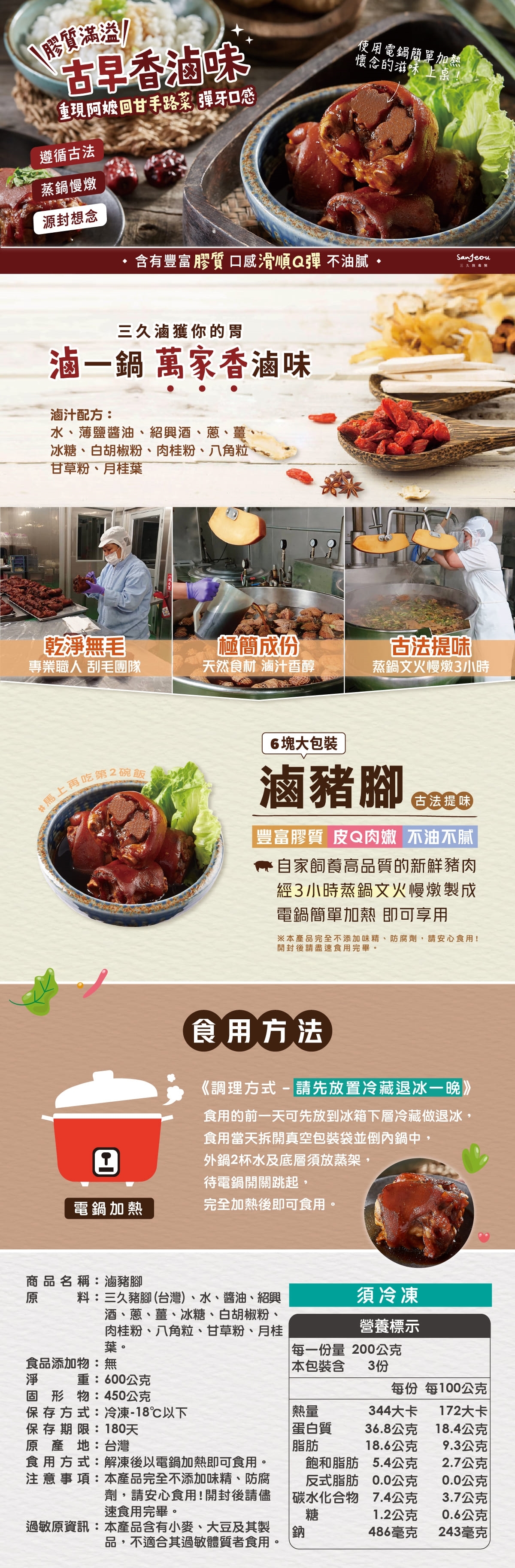 品名 : 三久無毒豬 滷豬腳 6塊/包
