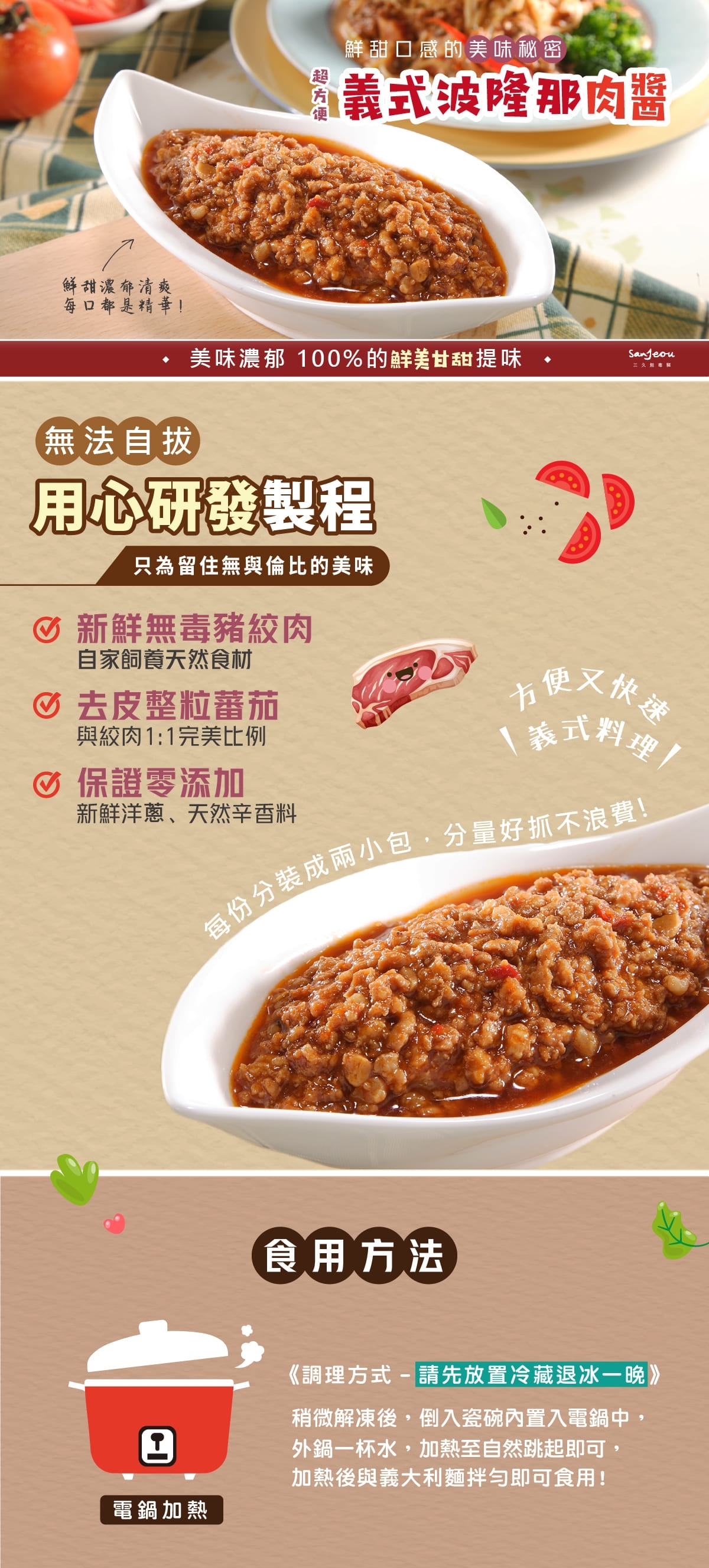 ◆嚴選三久豬絞肉+去皮整粒番茄 1:1 的完美比例。