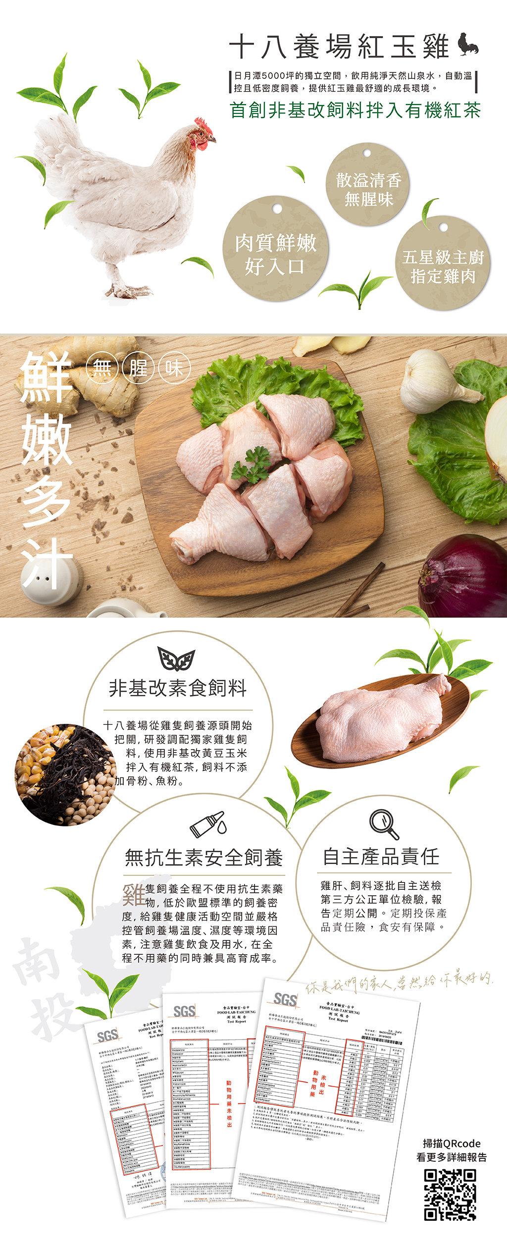 ◎全台首創:自養高品質紅玉雞,全程餵養非基改玉米黃豆。