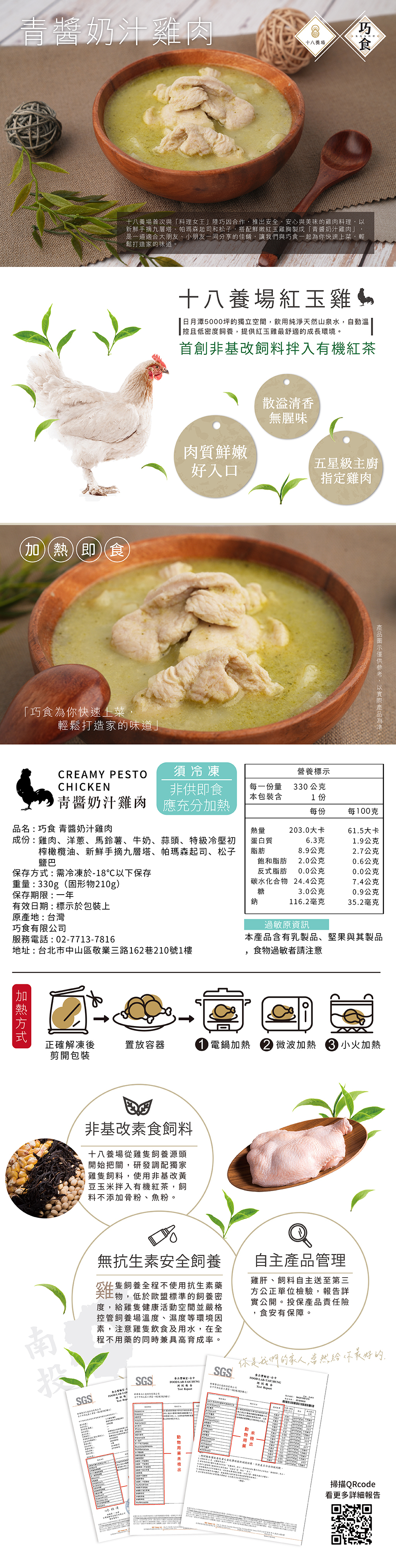 品名 : 十八養場 青醬奶汁雞肉 330g/包