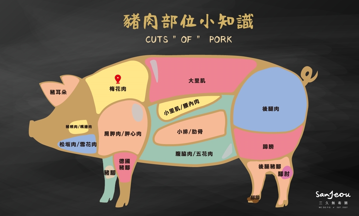 ◆位於豬隻的肩胛部位上方,有著大理石漂亮紋理。