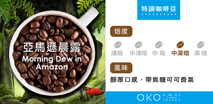 品名 : OKO 特調咖啡豆 亞馬遜晨露-中深烘焙